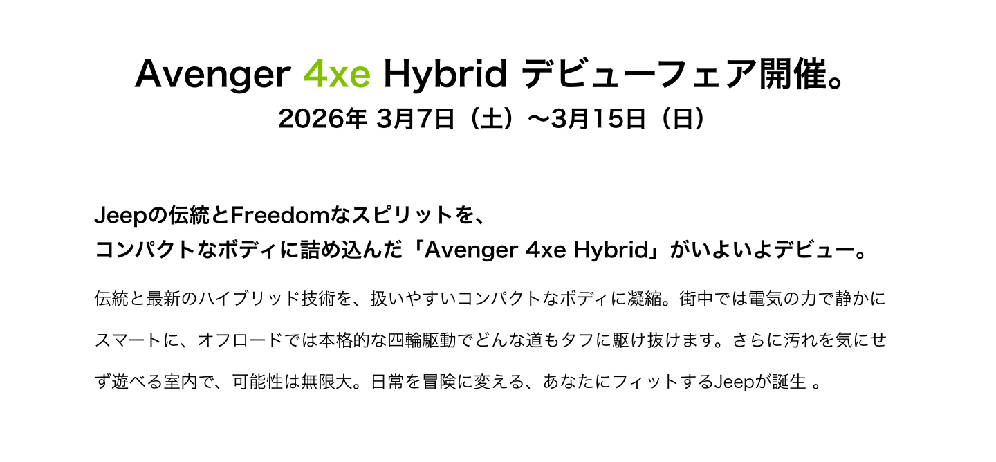 Jeep Avenger 4xe Hybrid デビューフェア